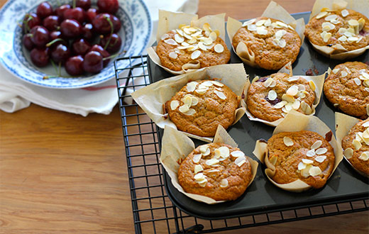 4. In small bowl, combine milk, agave, almond butter, oil and egg; mix well. Add to dry ingredients; stir just until dry ingredients are moistened. Fill muffin cups. Sprinkle with remaining cereals and the almonds, pressing lightly into batter.